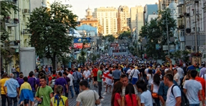 В целом, цены на продукты питания на Крещатике не поменялись, продавцы до сих пор запрашивают 20-30 гривен за снек или бутерброд. Зато подешевели напитки. Если раньше "Колу", "Фанту" и квас продавали за 10 гривен, то сегодня они стоят по 8 гривен за бутылку 0,5 литра. По-прежнему популярны футболки и шарфики с логотипом сборных. Они, как и раньше, продаются по 250 – 150 гривен соответственно. Но специально к финалу ассортимент немного поменялся. Большую часть составляют одежки с надписью "Испании и Италии", и "Финал Евро - Италия Испания", которые напечатали за пару дней до финала.