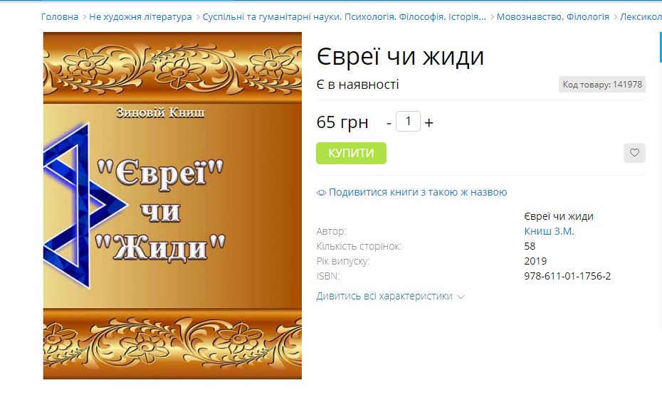 Книгу можно приобрести за 65-85 гривен в нескольких украинских интернет-магазинах. Согласно описанию, автор книги призывает украинцев использовать слово "жиды" по отношению к евреям. Кныш аргументирует это тем, что слово "евреи" принято употреблять в России, а в Украине всегда говорили "жиды". Автор подчеркивает, что в России это слово приобрело оскорбительный окрас, а на территорию Украины его привезли сами евреи из Франции и Германии.