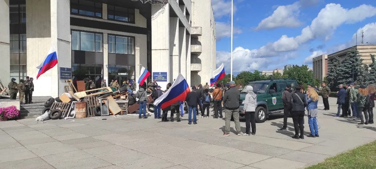 Многих обеспокоило происходящее и жители столицы начали публиковать фото и видео митинга в соцсети. На фото видно, что группа людей, состоящая их нескольких десятков человек, собралась под РГА с флагами Российской Федерации.