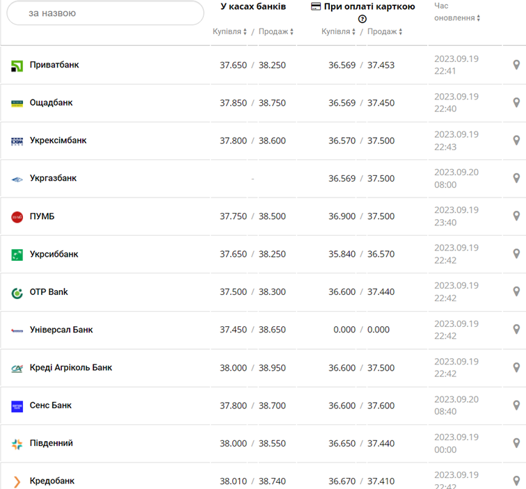 Доллары в обменных пунктах в среднем покупают за 38,28 гривны, а продают по 38,50 гривны. Евро в обменниках покупают за 41,15 грн., а продают за 41,45 грн.