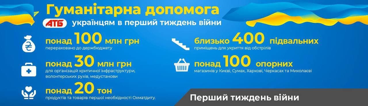 За первую неделю военной агрессии на территории Украины корпорация АТБ предоставила украинцам помощь продуктами питания и товарами первой необходимости в десятки миллионов гривен.