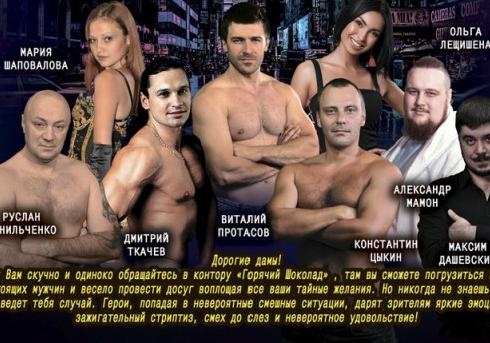 Если Вам скучно и одиноко обращайтесь в контору "Горячий Шоколад" , там вы сможете погрузиться в мир настоящих мужчин и весело провести досуг воплощая все ваши тайные желания. Но никогда не знаешь куда заведет тебя случай. Герои, попадая в невероятные смешные ситуации, дарят зрителям яркие эмоции, зажигательный стриптиз, смех до слез и невероятное удовольствие!