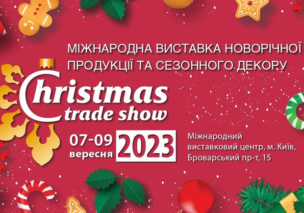 XII Міжнародна виставка новорічної продукції та сезонного декору CHRISTMAS TRADE SHOW, відбудеться 7-9 вересня 2023 року в Міжнародному виставковому центрі (м. Київ, Броварський пр-т, 15)