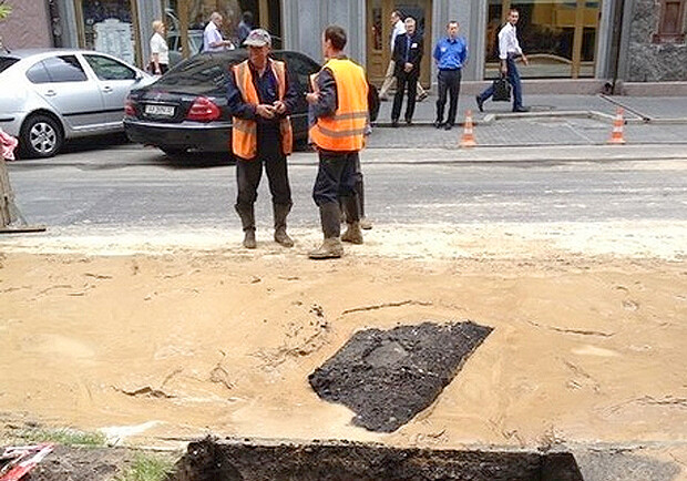 Новость - Коммуналка - Фотофакт: в центре Киева провалился асфальт