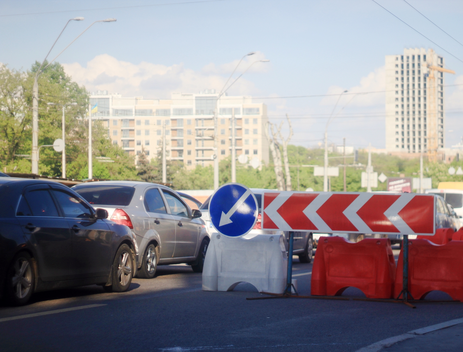 Движение перекрыто на крайней правой полосе в направлении проспекта Николая Бажана со Столичного Шоссе.