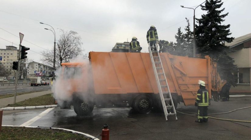 Злая шутка жизни: в Киеве мусоровоз загорелся и сам приехал к пожарным. Фото