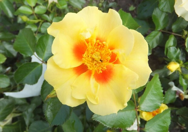 В ботаническом саду есть более пяти видов подобных "глазастых" роз. А всего в экспозиционной части розария ботсада представлены более 150 сортов различных садовых групп.