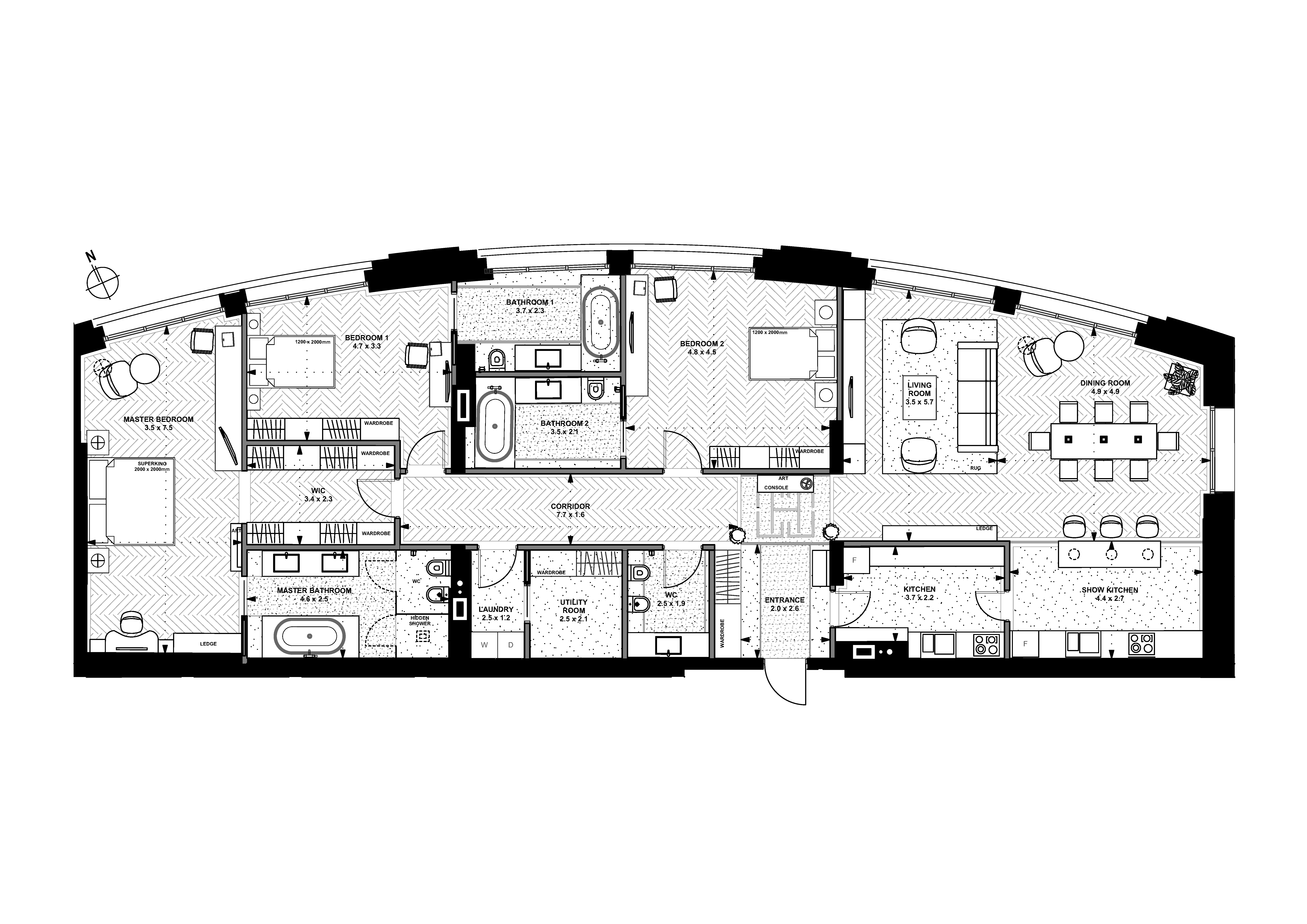 В доме отдельное внимание уделено квартирам для проживания с семьей: во всех спальнях семейных резиденций предусмотрены ванные комнаты и места для гардероба. Каждая резиденция имеет индивидуальную систему вентиляции с фильтрацией и очисткой воздуха. Централизованно очищается вода до состояния питьевой и подается в квартиру.
