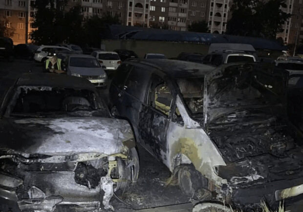 Как сообщили спасатели, огонь вспыхнул на проспекте Владимира Ивасюка, где сначала загорелся мусор. Пламя быстро распространилось на припаркованные рядом автомобили, что привело к значительным повреждениям.