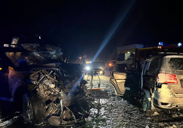 Как сообщают в пресс-службе полиции, ДТП произошло 28 декабря около 21:10 на автодороге Киев-Харьков, вблизи села Иванков Бориспольского района Киевщины. В аварию попали маршрутка Mercedes-Benz и легковые автомобили Jeep и Volkswagen.