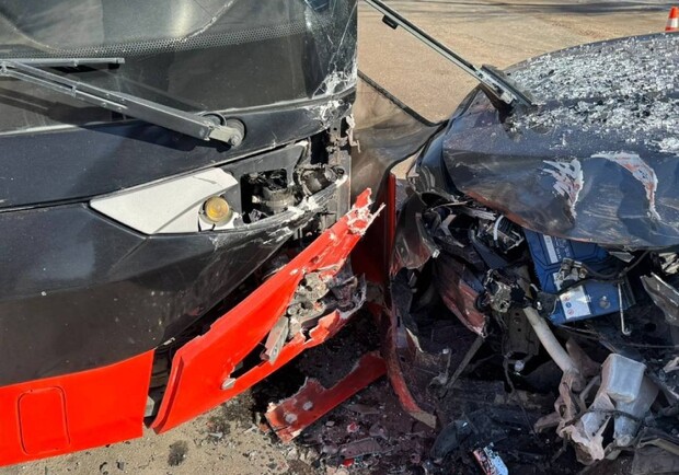 В Харькове столкнулись пассажирский автобус и автомобиль