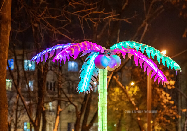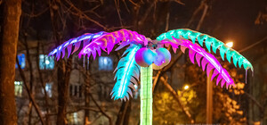 "Лос-Анжелес на ХТЗ:": в спальном районе Харькова установили светящуюся пальму (фото)