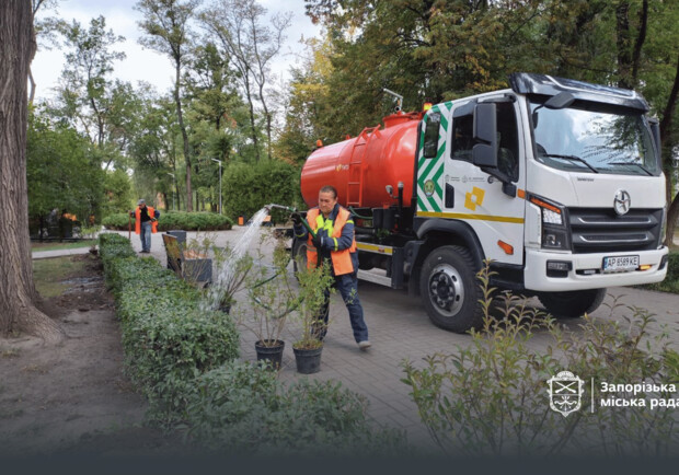 В Запорожье, городе рядом с линией фронта, высадили 220 кустов в сквере Бирюка
