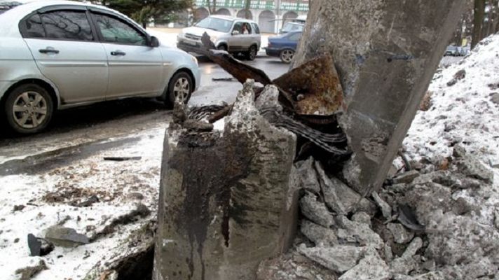 Не справившись с управлением, водитель BMW на полном ходу снес столб. Фото: golos.ua