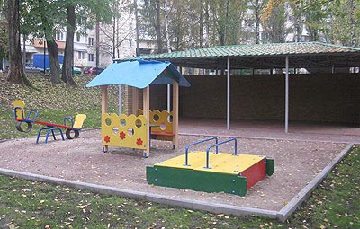 На участке расположено 6 игровых площадок с оборудованием (теневые навесы, песочницы, балансир, домик), 1 спорткомплекс, спортивная площадка, площадка по изучению правил дорожного движения, 1 игровая площадка.