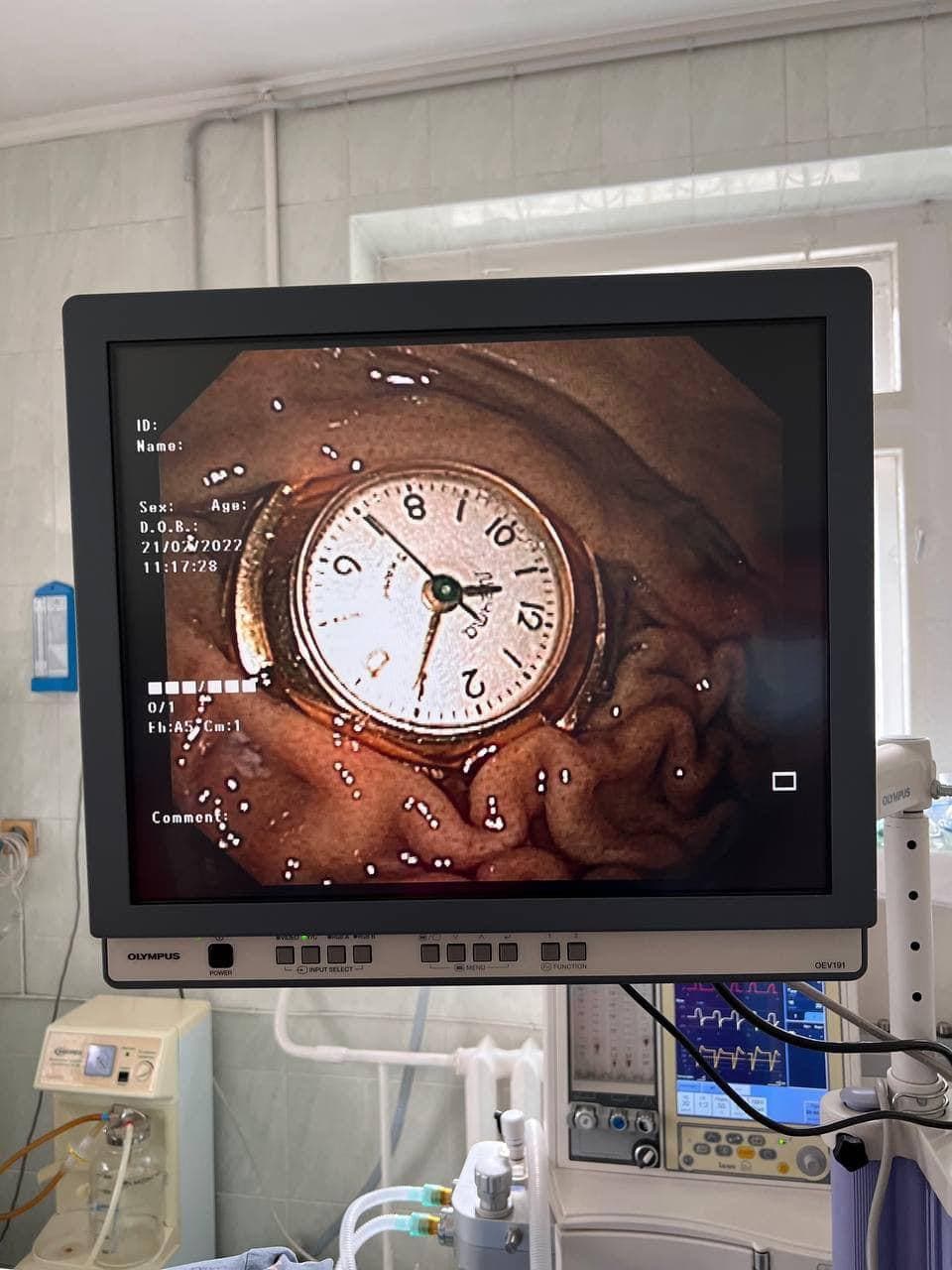 Завдяки командній роботі анестезіологічної команди та ендоскопічної бригади годинник дістали ендоскопічно за три хвилини, без розрізів. Малюк в цей час перебував під наркозом. Цікаво, що навіть перебуваючи в шлунку годинник працював і показував правильний час.