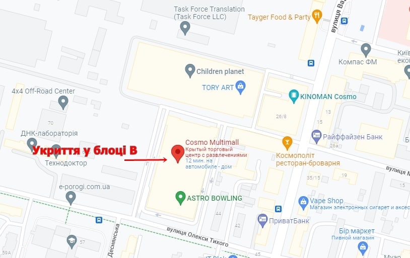 У разі повітряної тривоги адміністрація просить усіх відвідувачів та співробітників прямувати до найближчого укриття та бомбосховища. Їх можна знайти на карті сховищ Деснянського району.