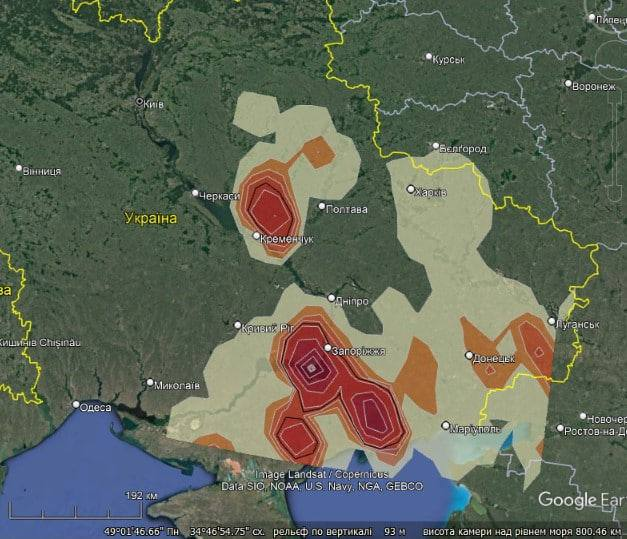 Фахівець сказав, що 22 та 23 серпня відбувалося інтенсивне перенесення у північно-західному напрямку. Тож в результаті цього продукти горіння від пожежі між Полтавою, Кременчуком та Черкасами потрапляли до Києва.
