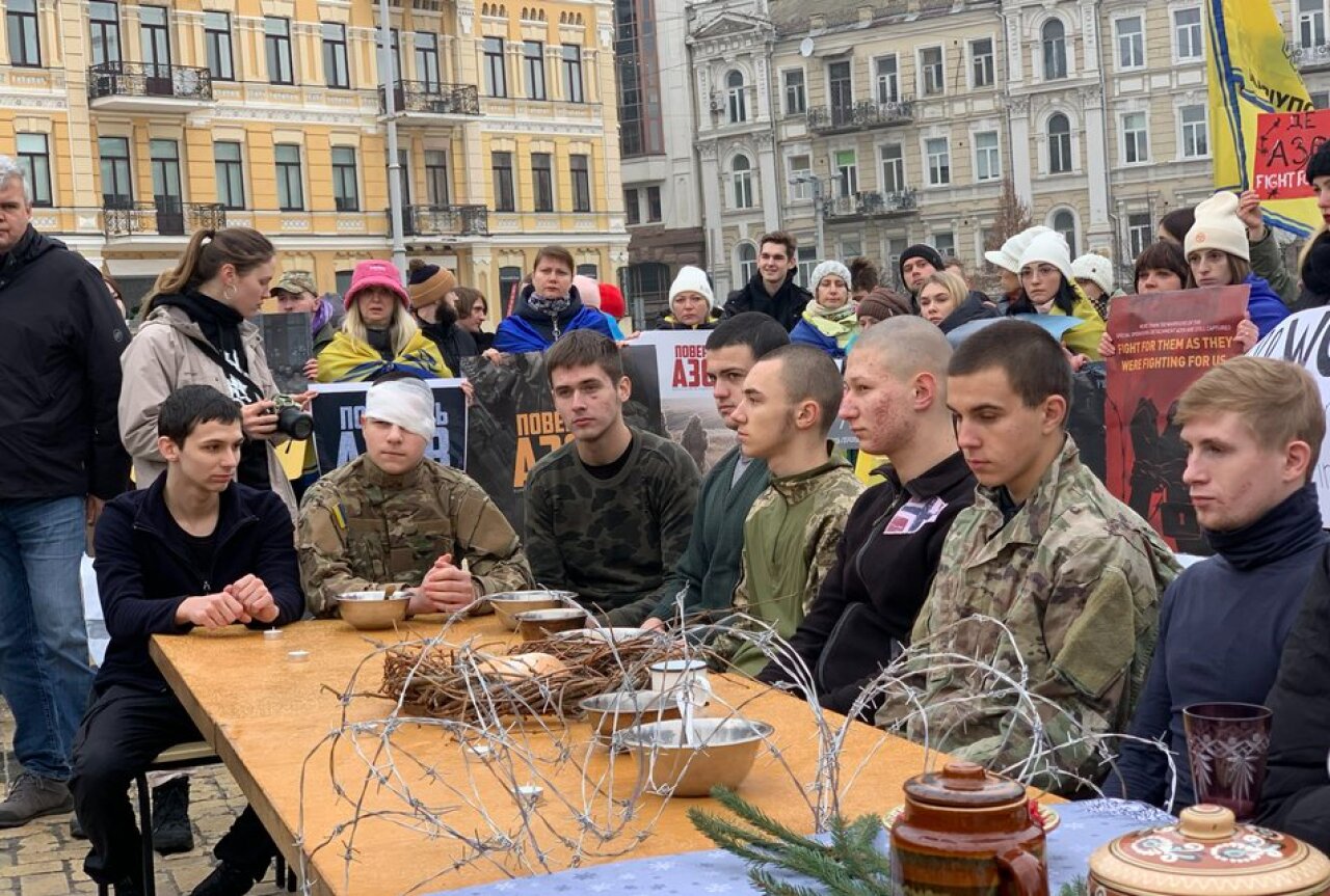 Напередодні Різдва, 24 грудня, сім'ї воїнів "Азовсталі", що перебувають у полоні, організували на площі перед стародавнім Софійським собором акцію, покликану підтримати бійців, які залишаються у ворожому полоні вже 7 місяців.