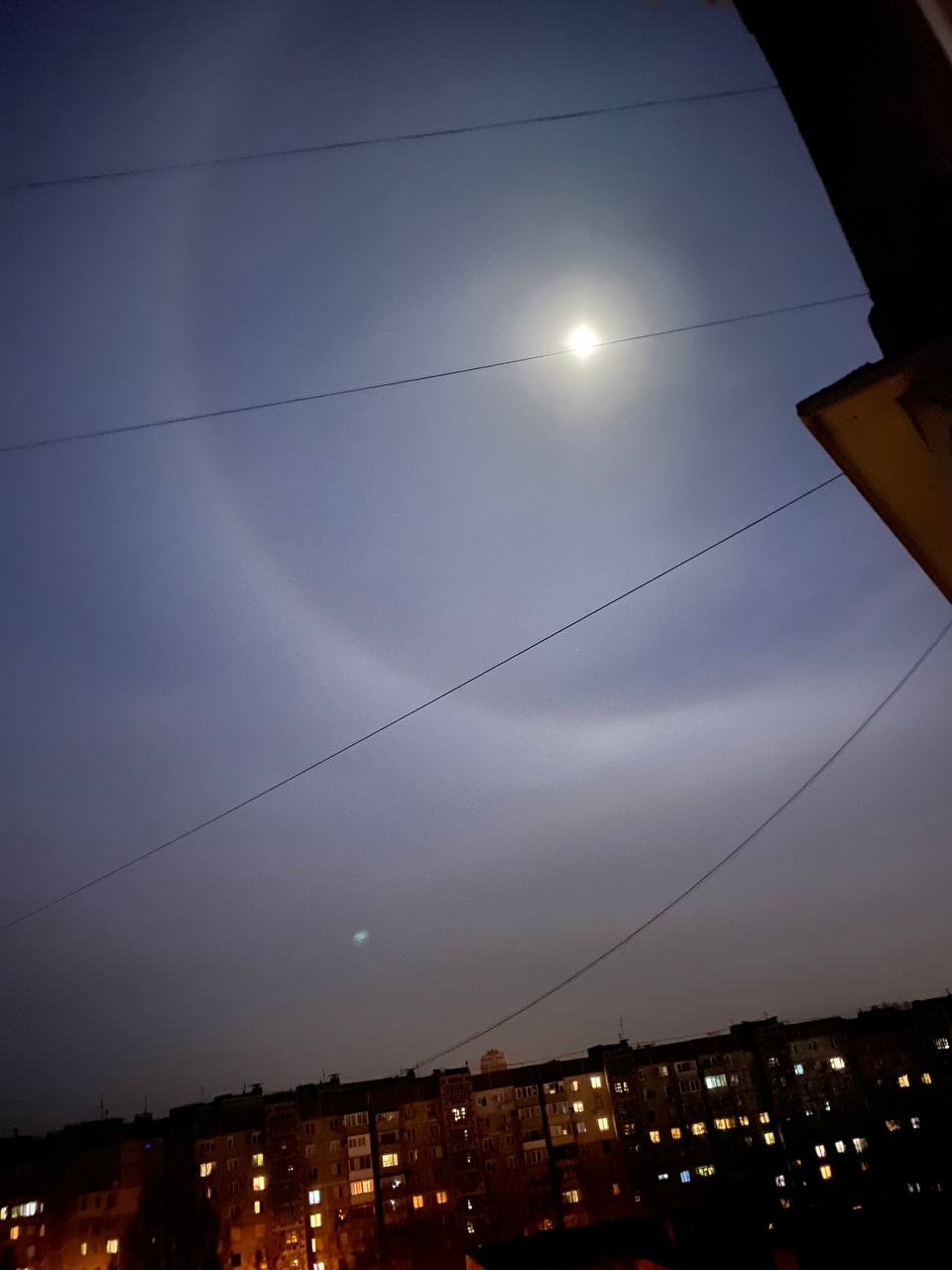 Для довідки: Гало - це група атмосферних оптичних явищ, що характеризуються виникненням вторинного світіння навколо джерела світла, що зазвичай має форму кола, кільця, дуги, світлового стовпа або "алмазного пилу".