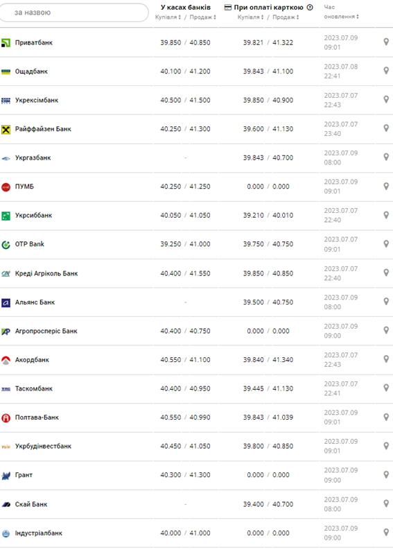* Курси з сайтів банків. Деякі банки можуть стягувати комісії за конвертацію. Дізнатися курс, яким будуть списані гроші, можна у кол-центрі банку.