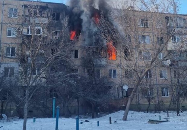 У Салтівському районі Харкова БпЛА влетів у житлову п'ятиповерхівку: горять квартири, є постраждалі