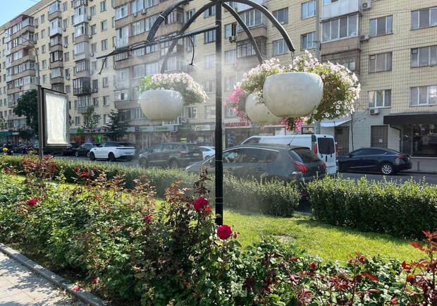 У столичних парках, скверах і на центральних вулицях міста встановлюють додаткові рамки-розпилювачі води для охолодження в літню спеку.